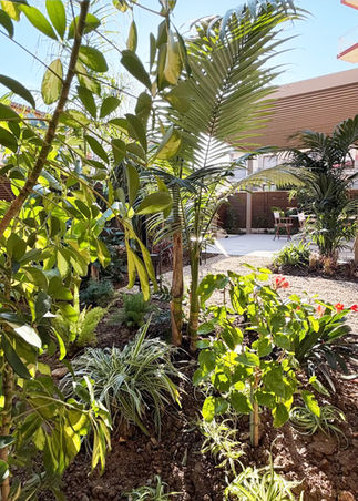 The courtyard acts as the heart of the project—an intermediate, semi-covered space where greenery intensifies. Shaded by pergolas or screening systems, it creates a comfortable microclimate and a relaxed atmosphere. Beyond, the garden extends the experience into a more natural and informal setting. Climate-responsive strategies—natural ventilation, shading, and the cooling effect of vegetation—enhance comfort while reducing energy demand.