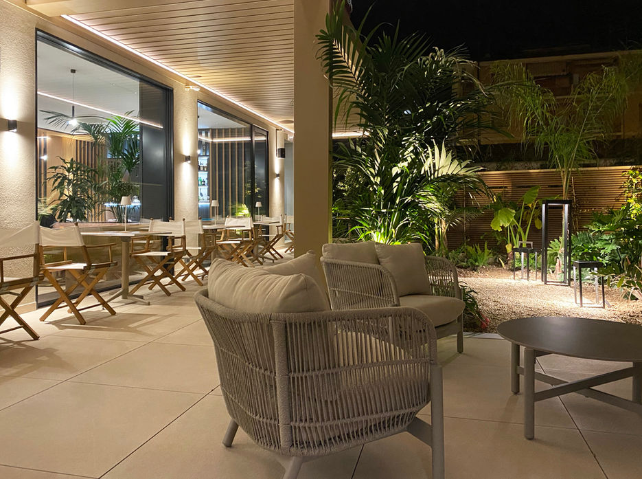 The concept is rooted in the idea of an urban oasis—a place that offers a sensory escape from the city while remaining deeply connected to it. The spatial experience unfolds as a gradual transition: from the lobby to the bar, through the courtyard, and into the garden. Rather than abrupt separations, this sequence is defined by subtle shifts in light, materials, and greenery.